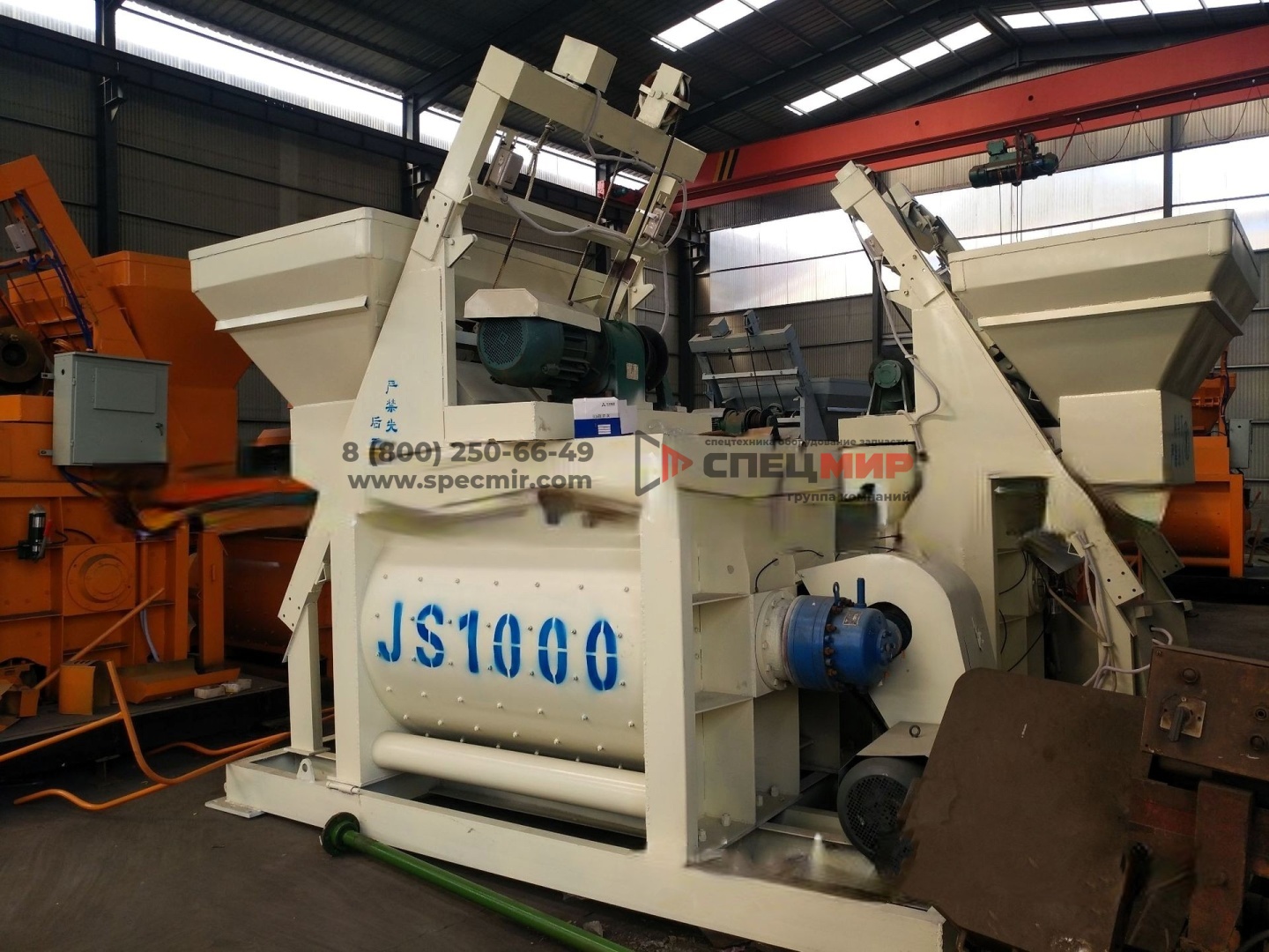 1.Двухвальный смеситель JS1000: объем загрузки - 1200л; объем готового замеса - 1000л; высота выгрузки - 4,2 м;